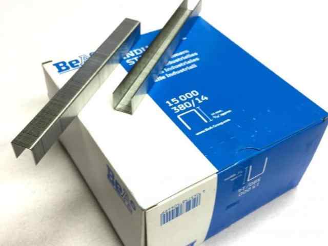 Čalúnnické spony 380/14 1000 ks. Spony z tenkých drôtov sú vyrábané do priemeru 1 mm. Použitie spôn je pri rôznorodých ľahkých a jemných prácach, napríklad všetky práce pri čalúnení. Výber vhodného typu – hrúbka drôtu, šírka spony a jej dĺžka, potom ovplyvňujú požiadavky na prevedené spoje.