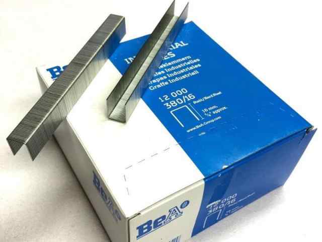 Čalúnnické spony 380/16 1000 ks. Spony z tenkých drôtov sú vyrábané do priemeru 1 mm. Použitie spôn je pri rôznorodých ľahkých a jemných prácach, napríklad všetky práce pri čalúnení. Výber vhodného typu – hrúbka drôtu, šírka spony a jej dĺžka, potom ovplyvňujú požiadavky na prevedené spoje.
