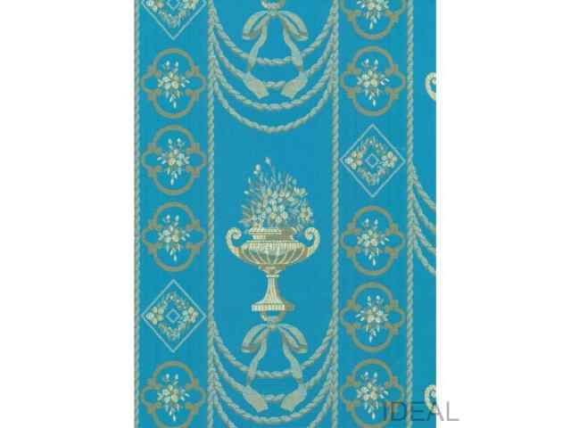 HORTENSIA 1985/517. Poťahová a dekoračná látka jemná, lesklá. Vzor: veľý,florálny, ornamentálny, mriežky štýl: klasicizmus