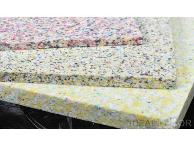 Recyklovaná pojená molitanová drť RE80 kg/m3 je vhodná na jadrá matracov a na pevnejšie časti sedačiek.