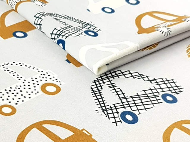 WONDER VELVET Autá 01 Poťahová látka typu zamat. Je to látka ideálna pre použitie v interiéry. Zamat poťahová látka je ideálnym materiálom na závesy, vankúše, prikrývky, ale aj na čalúnenie sedačky. Ideálne použitie pre deti v detskej izbe. Pri hľadaní krásnych látok s potlačou na šitie pre deti si pozrite Našu kolekciu. Dospelí ich ocenia jasnú potlač vyrobenú ekologickou technológiou.